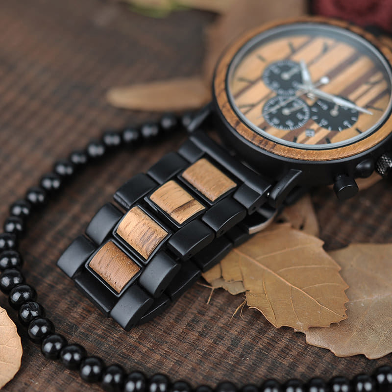 Dans ce que nous appelons luxe et moderne, sont l’apparence que nos montres dégagent. Ce ne sont pas de simples petites montres, elle sont entièrement conçues avec cœur & âme. Celles-ci vous donneront une allure somptueuse et professionnelle, tout en gardant l’aspect de légèreté du bois ! L’alliance sur certaines montres du bois et du bambou, est très important pour nous, car cela nous permet de garantir un poids très bas et aucuns sentiments de gènes ou de poignet trop lourd seront présents !